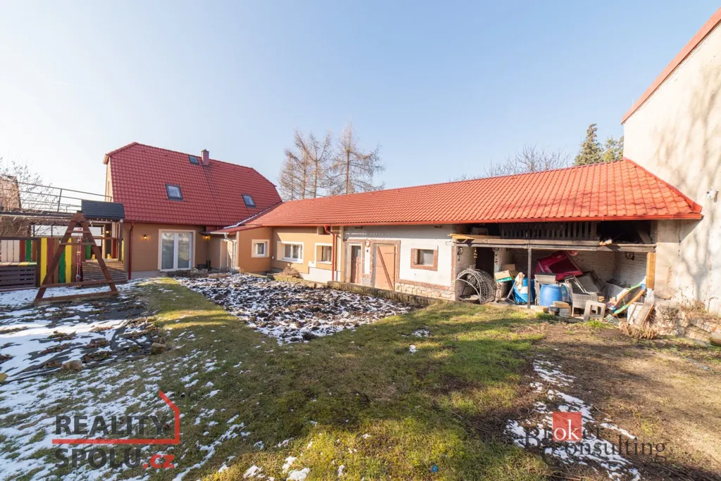 K nemovitosti náleží zahrada o velikosti 124 m², kde je umístěna klouzačka a dostatek prostoru pro hraní i odpočinek. Na dvůr lze pohodlně vjet velkými vraty, což usnadňuje parkování i manipulaci s materiálem. K dispozici je také dílna pro kutily.