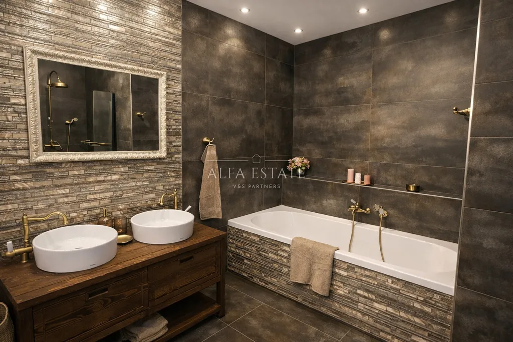 Interiér bytu byl navržen s důrazem na prostor, světlo a nadčasovou eleganci. Po vstupu do bytu vás přivítá předsíň, ze které se otevírá vstup do velkorysé koupelny zpracované do posledního detailu. Ta nabízí jak komfortní vanu pro relaxaci, tak prostorný sprchový kout a je doplněna vysoce kvalitními designovými doplňky. Samostatná toaleta zajišťuje maximální komfort a soukromí.