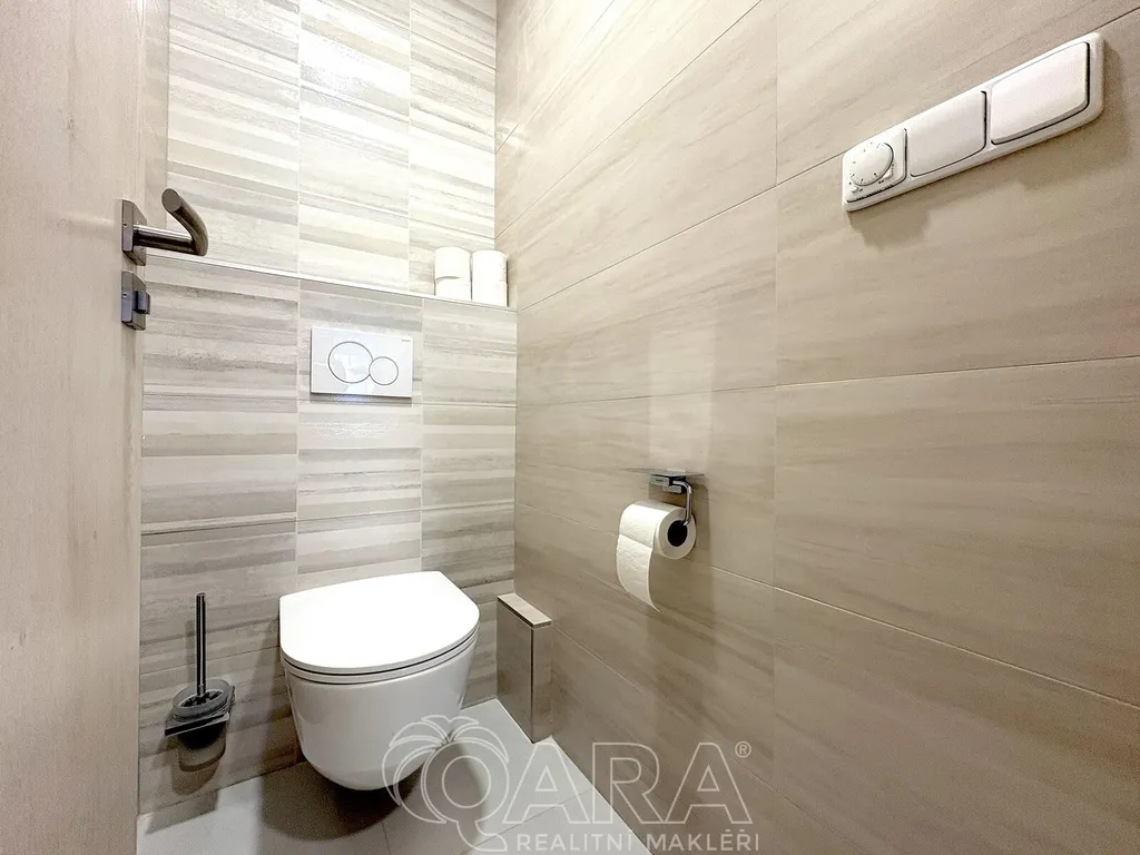 Dispozice bytu nabízí ložnici s lodžií orientovanou na jih, stejně tak druhý pokoj je situovaný na jižní stranu a skvěle poslouží jako dětský pokoj. Obývací pokoj a kuchyně jsou orientovány na sever. Byt je vybaven plastovými okny, na podlahách je vinyl v kombinaci s dlažbou. V koupelně a na toaletě je navíc podlahové vytápění, které oceníte hlavně v chladnějších měsících.