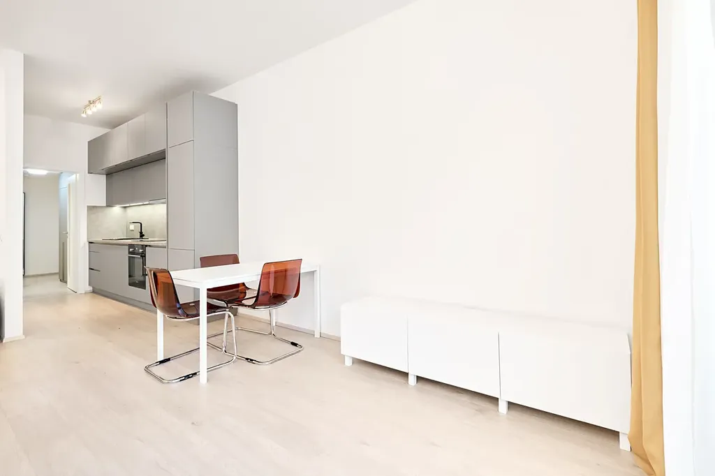 Interiér je plně zařízený designovým nábytkem na míru a nabízí nadstandardní výšku stropů 3,1 m, která vytváří příjemný pocit prostoru a světla.