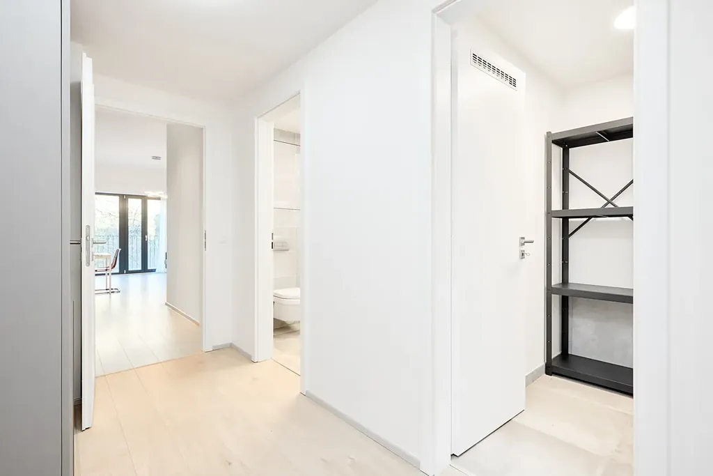 Byt o celkové ploše 44,6 m² + balkon 6,4 m² se nachází v 1. patře moderní novostavby na adrese Hartigova 1016/41a.
