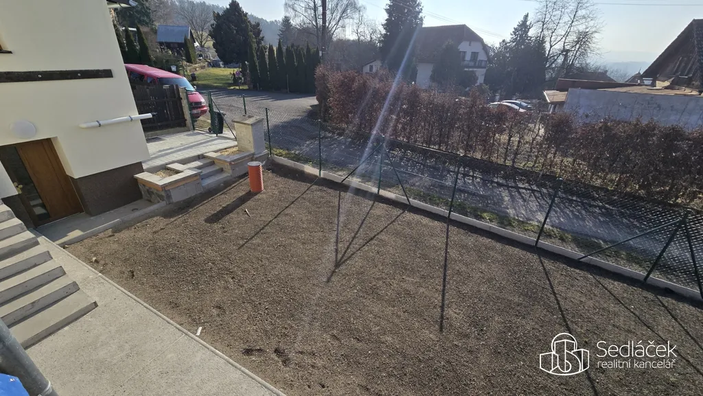 Součástí domu je terasa a menší zahrada, ideální pro posezení nebo relaxaci. V současné době se ještě dokončují některé práce, např. zábradlí na terase a schodech, výsev trávy.