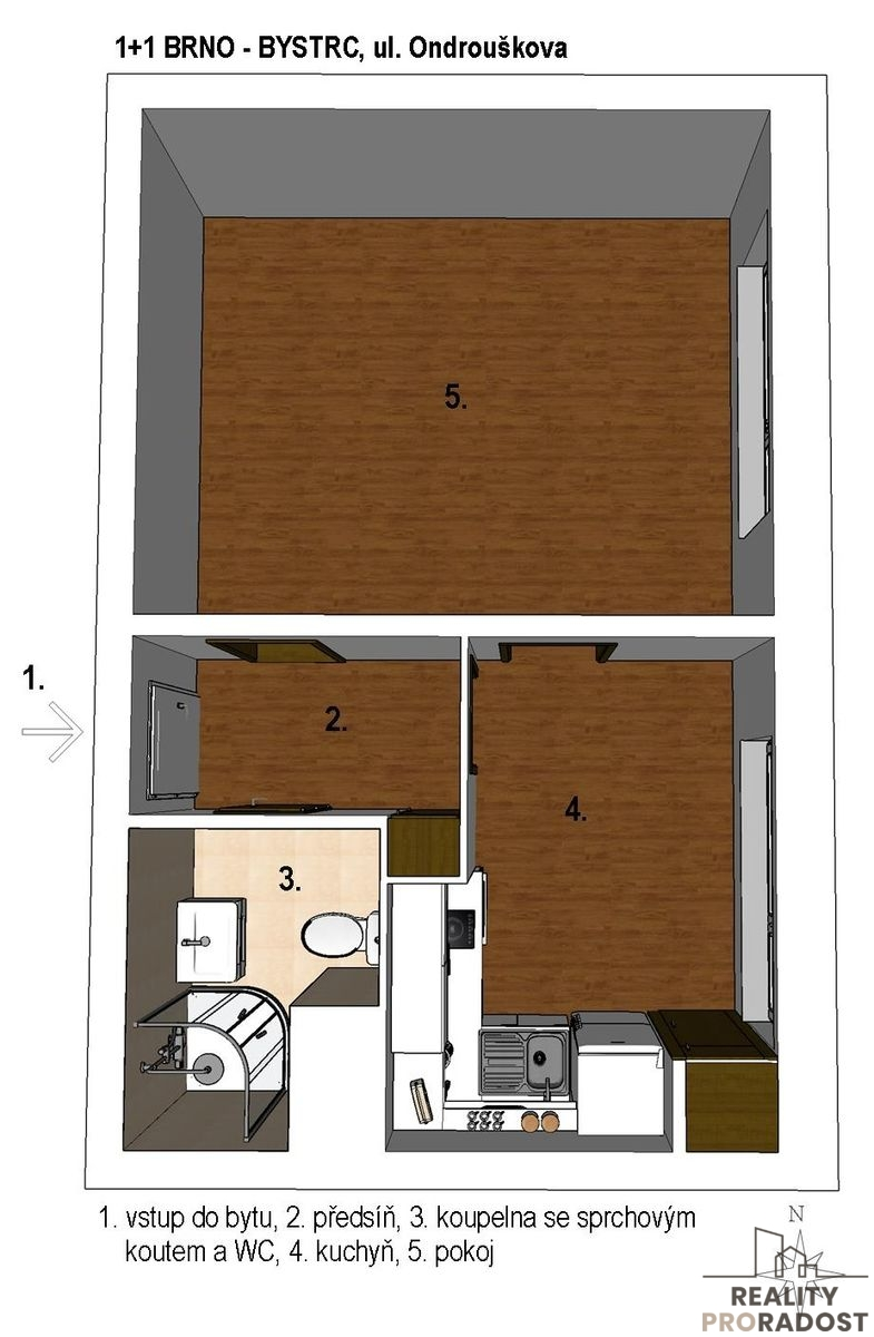 Pronájem bytu 1+1, Brno - Bystrc, Ondrouškova, 33 m2