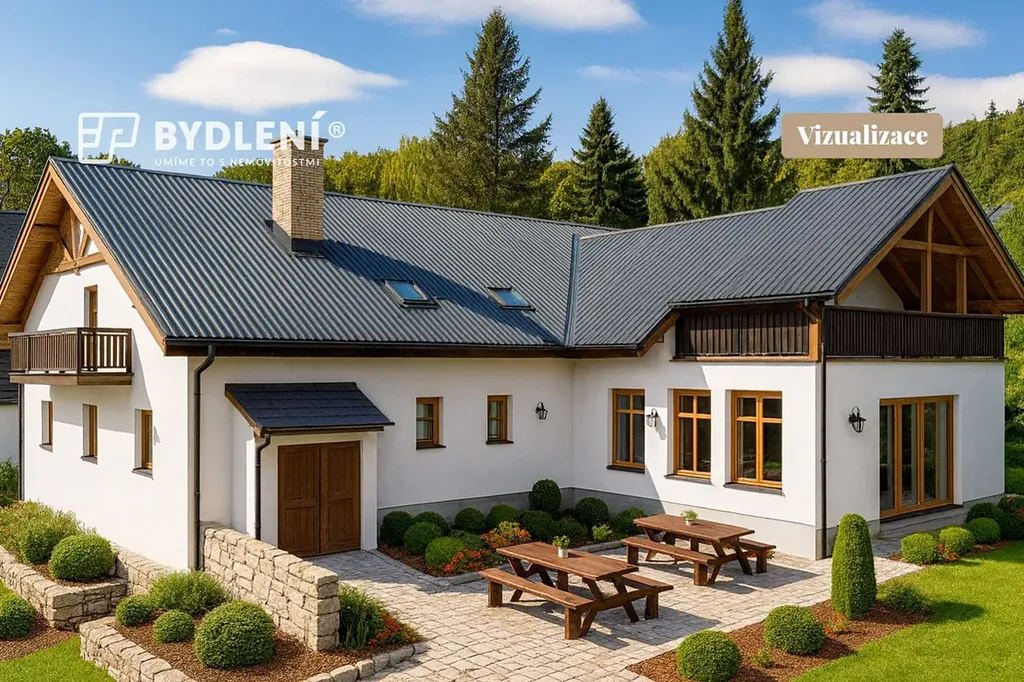 Realitní kancelář 3P Bydlení Teplice Vám exkluzivně nabízí k prodeji dům, který dříve sloužil jako hotel s restaurací a formankou v obci Pyšná, v klidné neprůjezdné části Krušných hor nedaleko Chomutova. Objekt měl za 15 let svého provozu v regionu tradici a stabilní klientelu i bez marketingu. V roce 2018 šli majitelé do důchodu a ze zdravotních důvodů se rozhodli pro prodej.