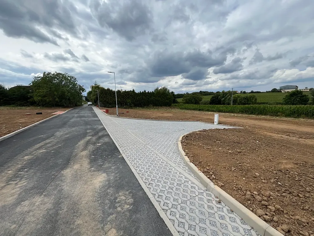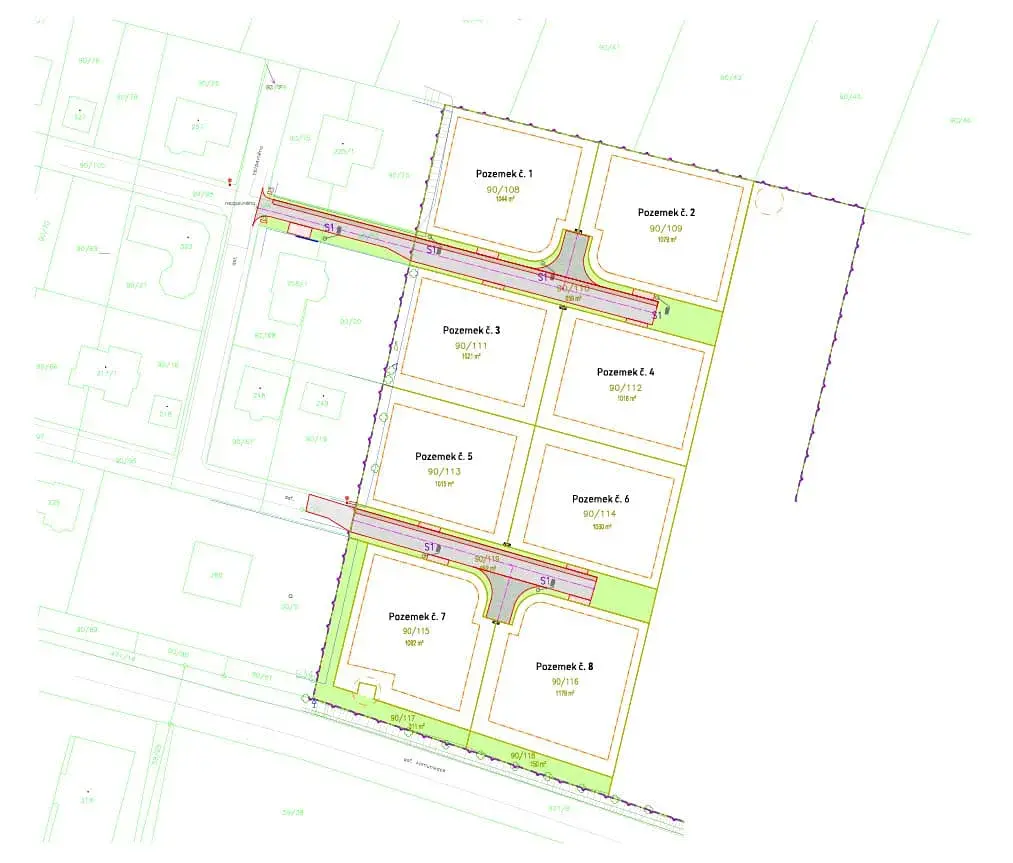 Pozemek je kompletně zasíťovaný - obecní vodovod, obecní kanalizace a elektro přípojka (přípojky jsou vytažené přímo na pozemky a ukončeny vodoměrnou a kanalizační šachtou ). Mezi pozemky je nová asfaltová komunikace s veřejným osvětlením. Komunikace se budou převádět do vlastnictví obce.