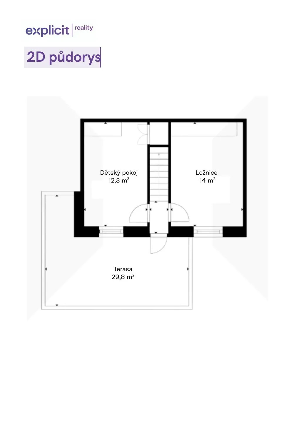 Ve 2. nadzemním podlaží se nachází dva samostatné pokoje využitelné jako ložnice a dětský pokoj či pracovna. Oba pokoje poskytují dostatek soukromí a variability využití. V ložnici je instalována klimatizace, která zvyšuje komfort zejména během horkých letních dnů. Z chodby je vstup na prostornou 20 m² velkou terasu, která představuje další příjemný venkovní prostor vhodný pro relaxaci, ranní kávu nebo večerní posezení.