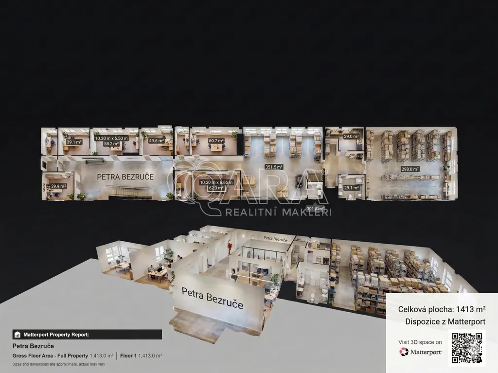 Budova poskytuje celkovou užitnou plochu 1 700 m². V prvním nadzemním podlaží získáte 1 300 m² volného prostoru (včetně rekonstruovaného prostoru kanceláří s kuchyňským koutem), zatímco v suterénu se nachází 400 m² včetně opraveného sociálního zázemí (oddělené šatny se sprchou a WC pro muže a ženy). Prostor je ideální nejen pro lehkou výrobu, montáž a klasické skladování, ale díky své poloze a velikosti skvěle poslouží i jako logistické centrum, e-commerce fulfillment, servis strojů a zařízení nebo prodejní showroom.