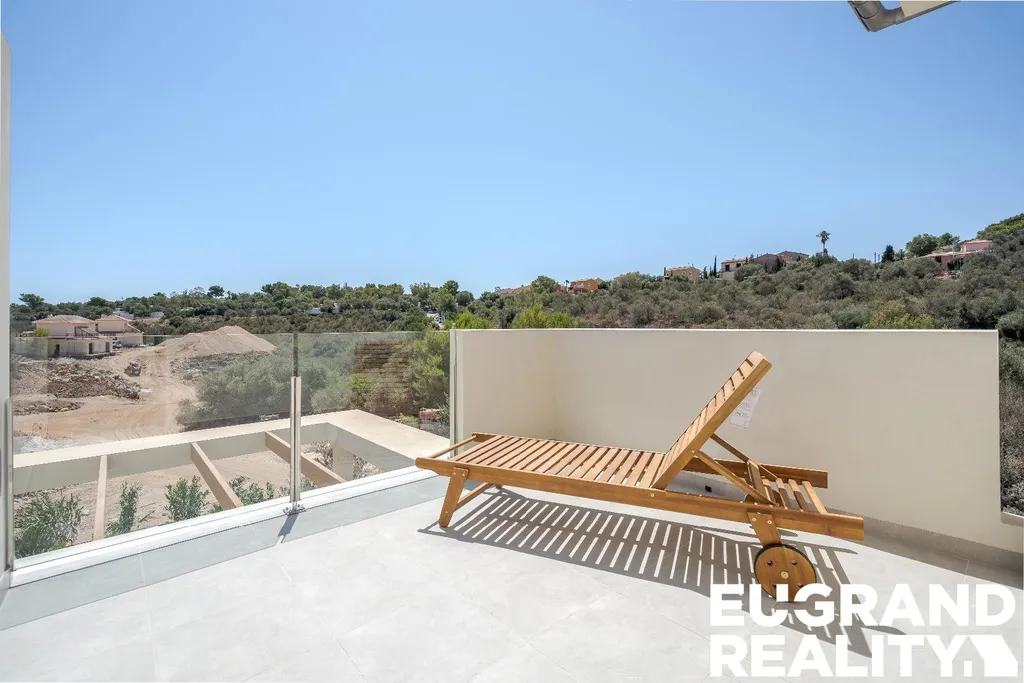 K domu náleží prostorná terasa a soukromá zahrada, která nabízí možnost instalace vlastního bazénu. Součástí venkovního prostoru je také pergola vhodná pro posezení a odpočinek.