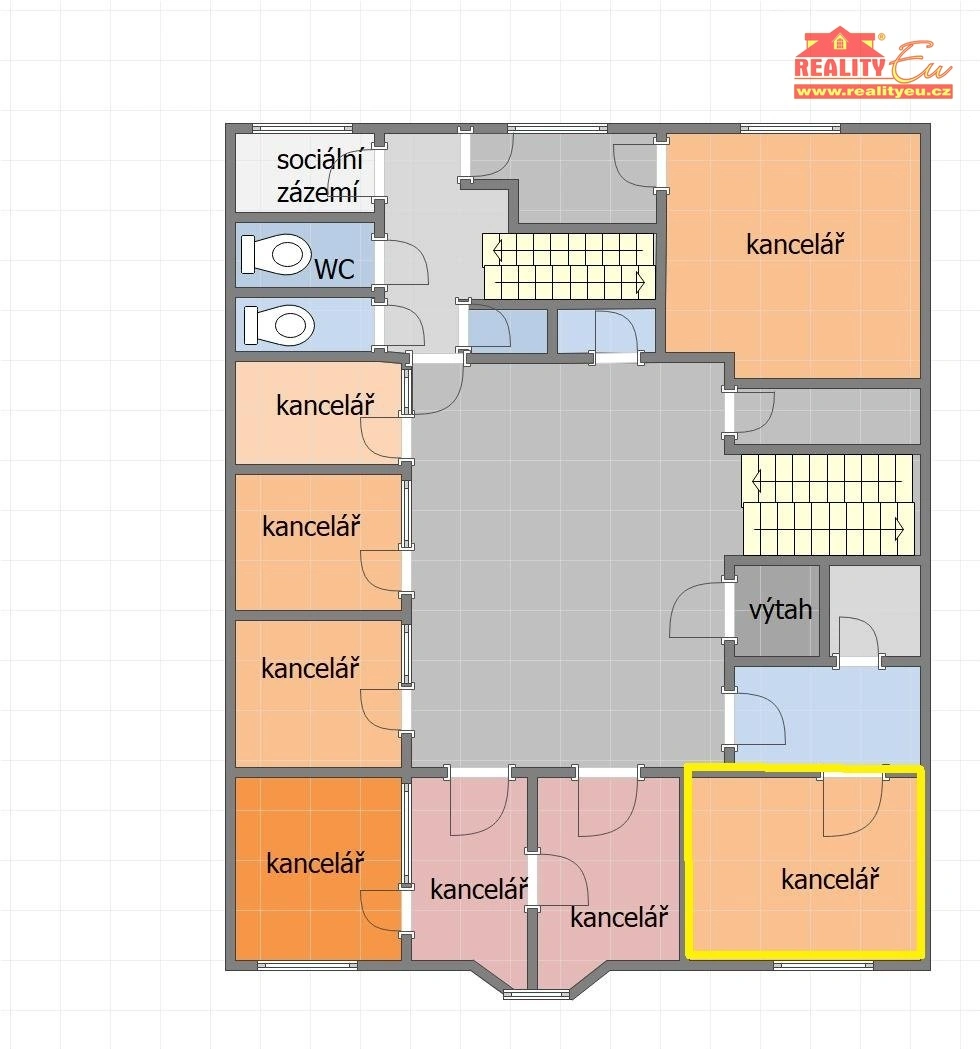 Nájem samostatné kanceláře ve 2.NP 37 m². Na podlaží k dispozici kompletní sociální zázemí včetně kuchyňky. Světlé moderní bezbariérové prostory v bývalém bankovním domě na hlavní třídě nabízí prostory pro administrativní práci na velmi dobré adrese. Budova obsahuje v každém patře odpovídající sociální zázemí. Vhodné pro společnosti hledající stabilní reprezentativní zázemí, pohodlný přístup a rozsáhlé sebeprezentační možnosti pro své zákazníky. Parkování za objektem zajištěno. Pohodlí a bezpečí pro klienty umožňuje výtah a kamerový systém. Unikátně postavená budova nabízí i další zajímavé komerční, nebo administrativní prostory moderního střihu s vysokým stupněm variability. Nájem je bez kauce a poplatků realitní kanceláře.