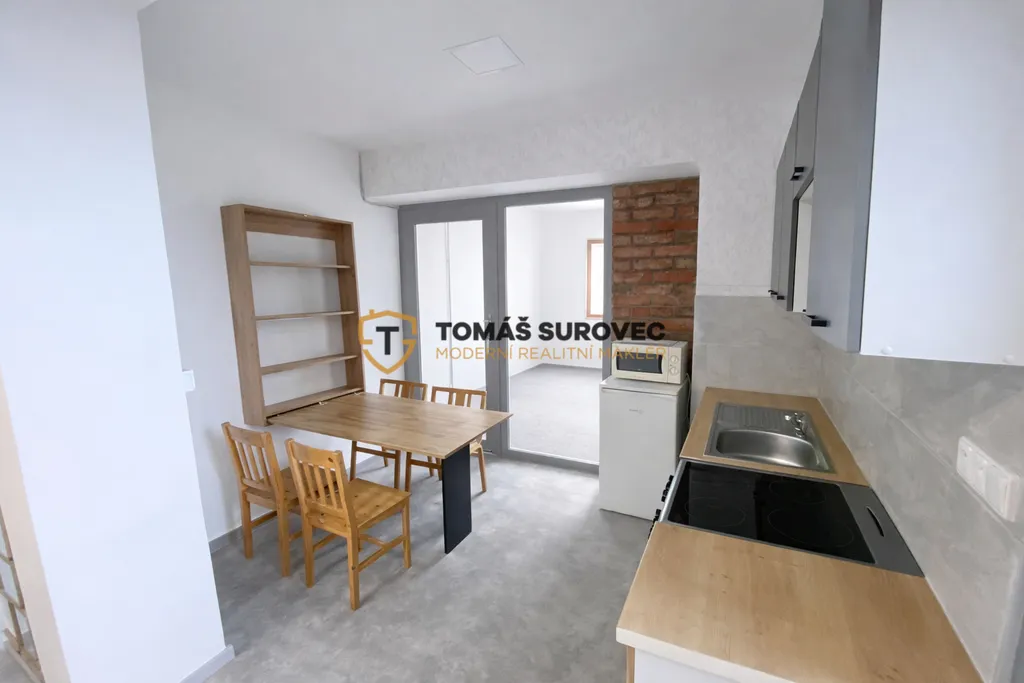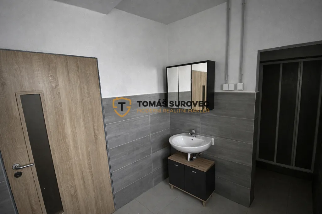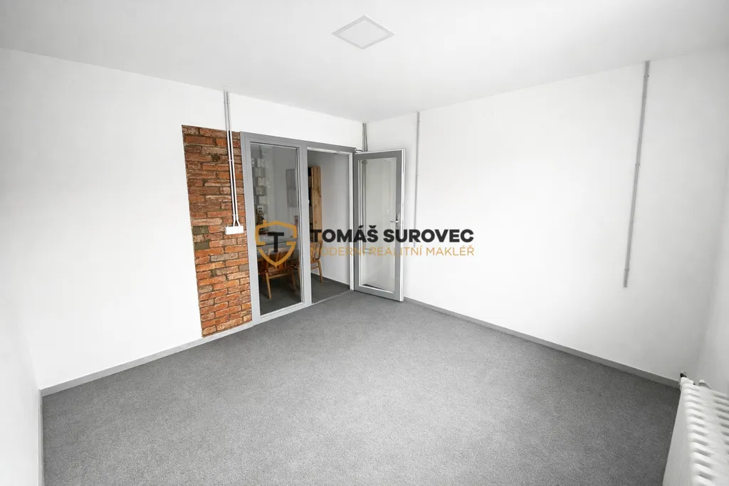 Dispozičně je kancelář řešena velmi prakticky. Vstupní chodba vede do hlavní kanceláře, která je průchozí do kuchyňky. Z kuchyňky je dále vstup do další samostatné místnosti, vhodné například jako zasedací místnost nebo druhá kancelář. Součástí prostoru je také vlastní WC a koupelna. Stav objektu je dobrý a nabízí příjemné a reprezentativní prostředí pro Vaše podnikání.