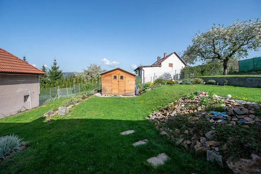- na pozemku se nachází také samostatný dvoupodlažní zděný domek se sedlovou střechou.
