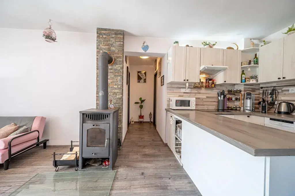 Předsíň. koupelna s vanou a WC, spíž, dva neprůchozí pokoje (15 m a 17 m), obývací pokoj s kuchyňským koutem, vstup na pochozí půdu s možností vestavby (1 větší nebo 2 menší pokoje). Díky půdnímu prostoru je zde potenciál pro rozšíření obytné části dle vašich potřeb.