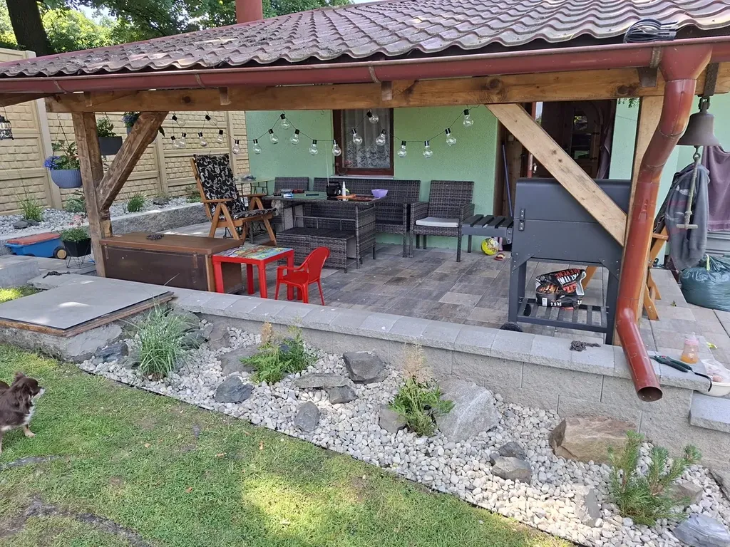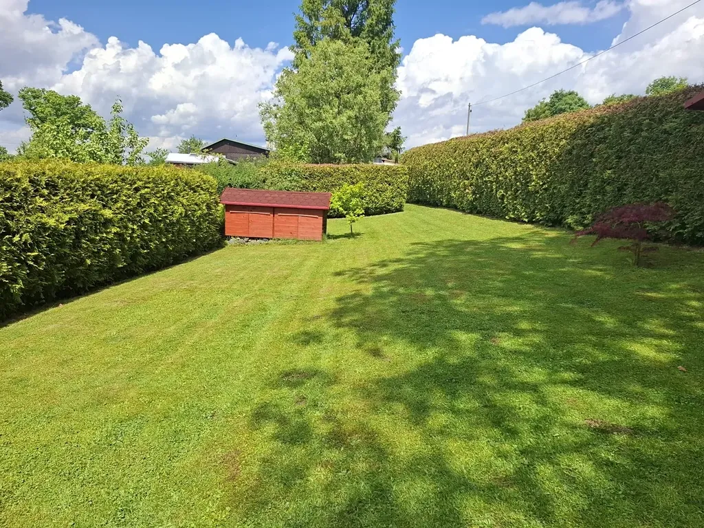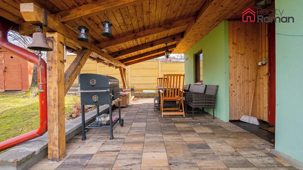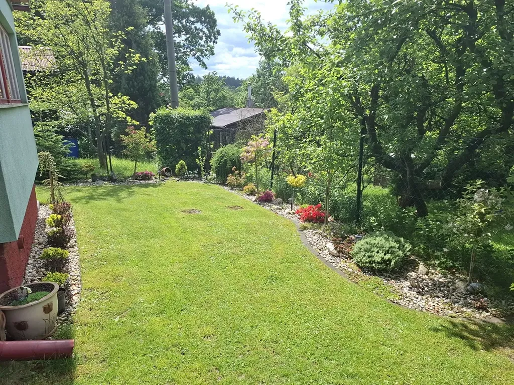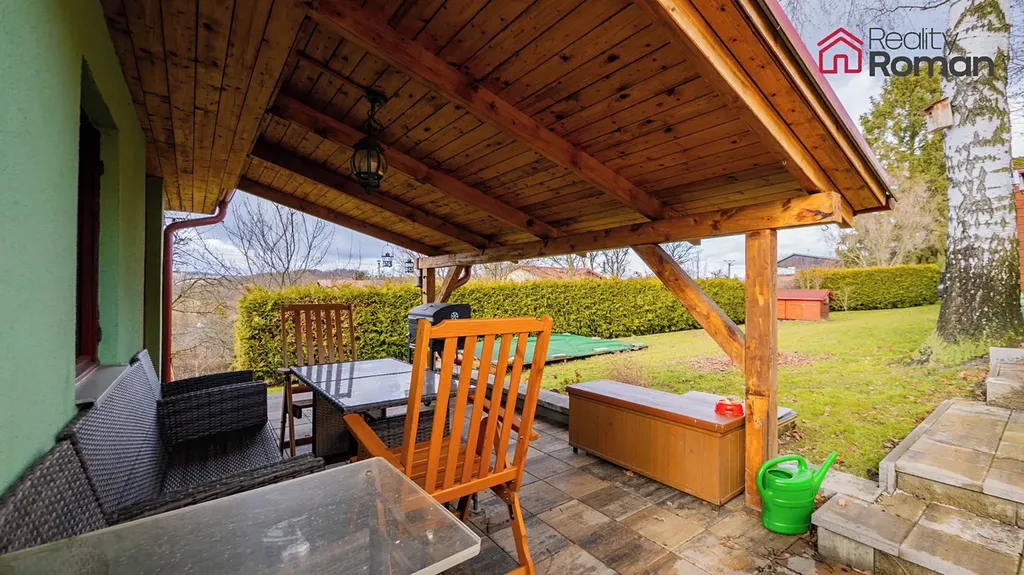 Chatu obklopuje vlastní udržovaná zahrada s okrasnými stromy a keři, která nabízí dostatek prostoru pro relaxaci, zahradničení i příjemné posezení s rodinou či přáteli.