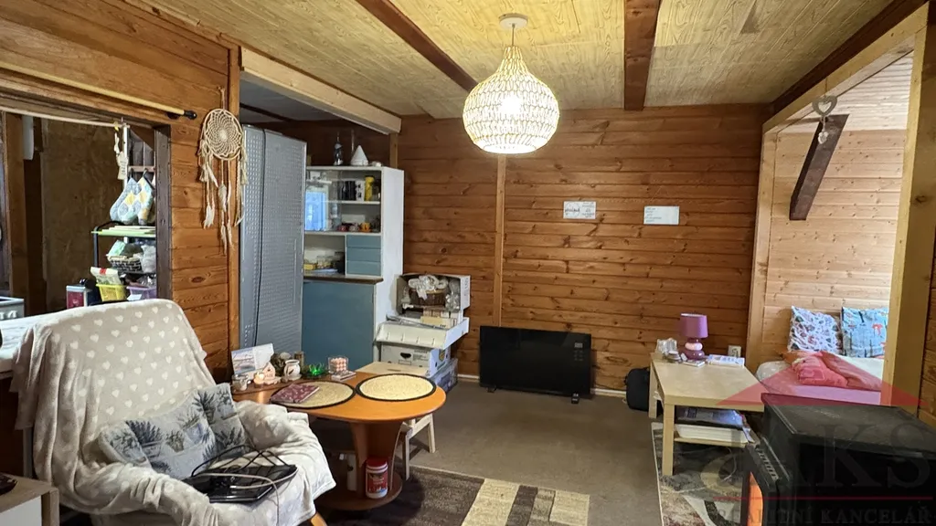 Nabízíme na prodej celoročně uživatelnou, částečně zateplenou, zařízenou, dřevěnou chatu (2+kk; cca 35 m2) v započaté nedokončené rekonstrukci (chybí fasáda a terénní úpravy) s vlastní studnou, ČOV a kolnou na pilotech, situovanou ve velmi klidné a slunné části v chatařské osadě u rybníka „Horejšek“ u obce Komušín 1 km, nedaleko města Horažďovice 8 km.