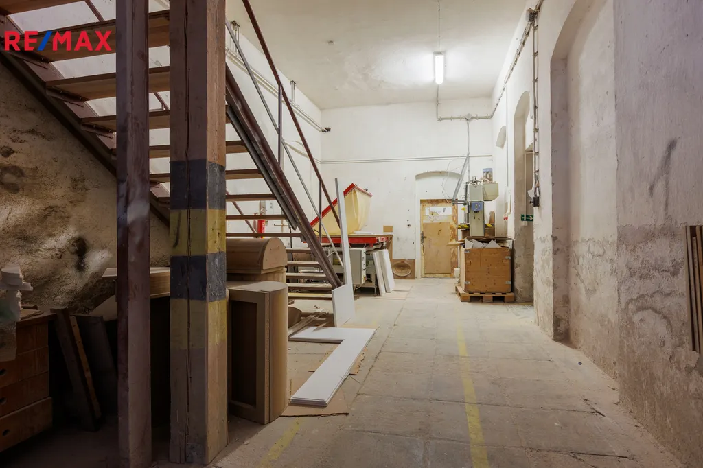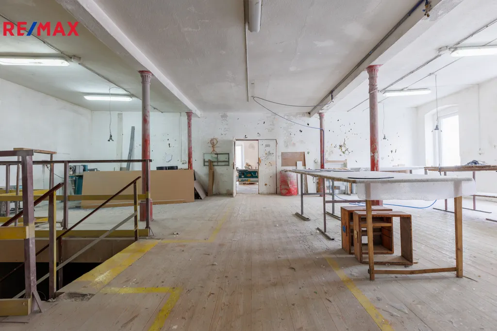 Druhou nemovitostí je rozsáhlý nepodsklepený objekt se třemi nadzemními podlažími, sedlovou střechou a půdním prostorem, který je v současnosti plně využíván k podnikatelské činnosti.