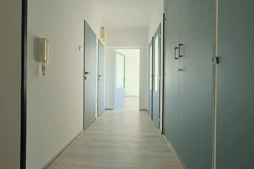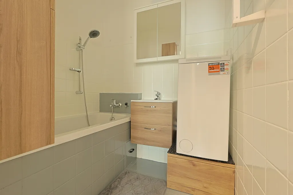 Byt prošel rekonstrukcí a je připraven k okamžitému nastěhování. K dispozici je nová kuchyňská linka včetně spotřebičů, nové podlahy a byt je čerstvě vymalovaný. Koupelna je vybavena vanou a pračkou. Vestavěné skříně a interiérové dveře byly nově natřeny.