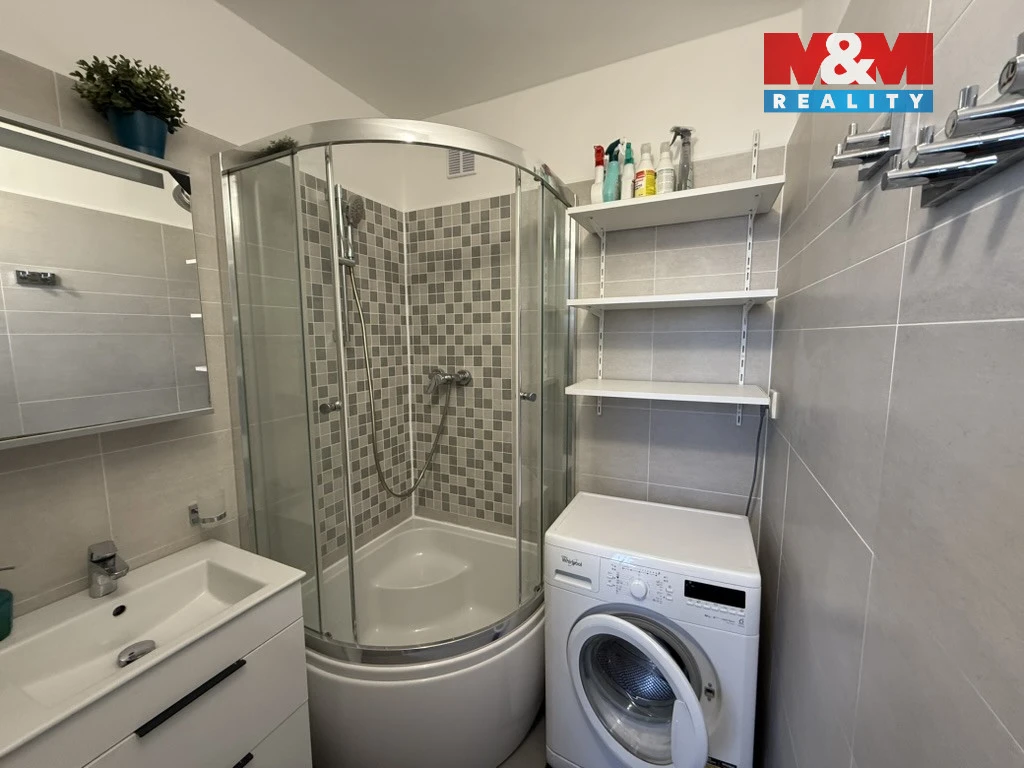 kuchyň: plynový sporák, elektrická trouba, myčka, pračka, koupelna se sprchovým koutem, samostatné WC, prostorná chodba s velkou vestavěnou skříní