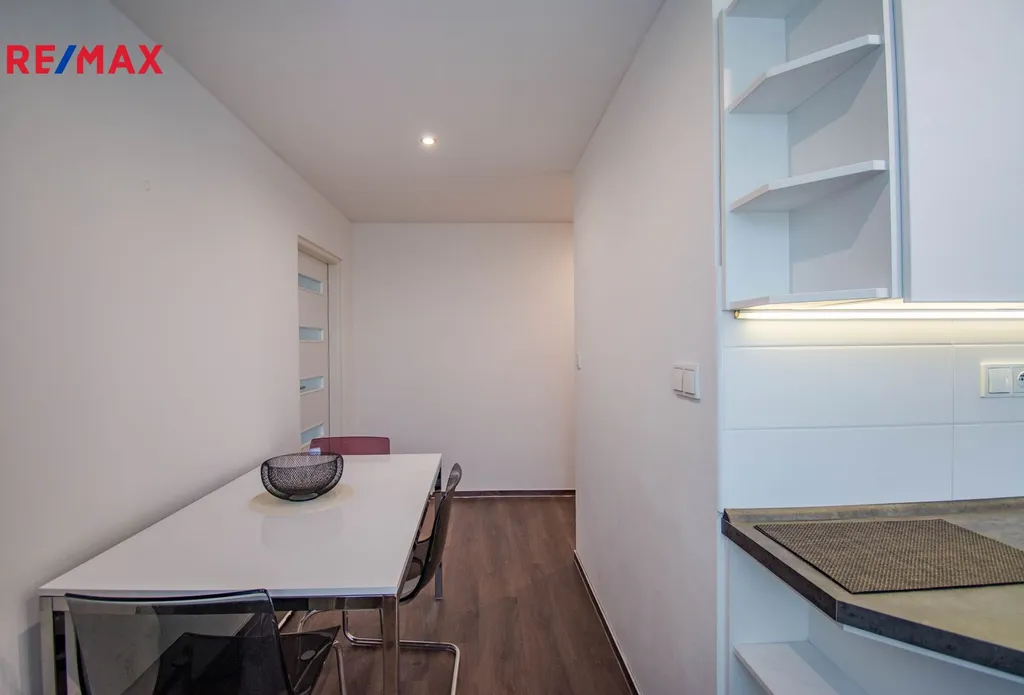 Byt prošel v minulosti celkovou rekonstrukcí a nabízí vstupní chodbu, koupelnu se sprchovým koutem společně s WC, jídelnu, kuchyň a dvě samostatné ložnice. Vybavení bytu je vestavěná šatní skříň, jídelní stůl + 4 židle, komoda, botník, lednice, pračka, myčka nádobí, el. trouba, základní nádobí a další drobné vybavení.