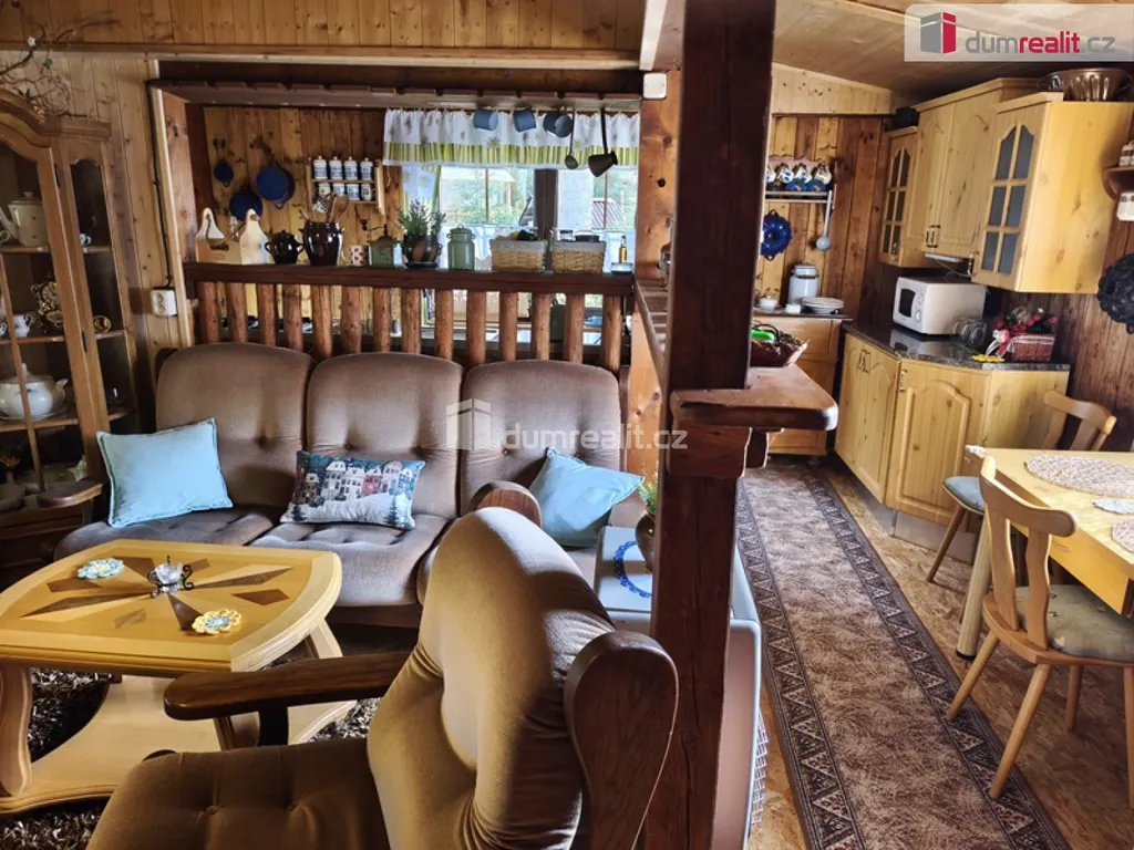Dumrealit.cz Vám zprostředkuje možný prodej velmi krásné chaty – dřevostavba v osadě U tuleňů u obce Šťáhlavice. Chata je dispozičně velmi dobře řešená – veranda s posezením, dále vstup do předsíně, ze které se dostaneme do prostorného obývacího pokoje s krbovými kamny. Z obývacího pokoje, propojeného do kuchyně s kombinovaným sporákem, linkou, dřezem na mytí nádobí a jídelním setem. Splachovací toaleta se sprchovým koutem, umyvadlem – ohřev vody průtokovým ohřívačem. Velký bonus jsou samostatné vstupy do dvou ložnic. Rekonstrukce – nová plechová střecha – zateplená, nový, vyvložkovaný komín ke krbovým kamnům, Nové, zateplené podlahy – OSB desky. Voda i odpad v plastu. Septik má obsah 3m². Velký bonus – internet zdarma (vysílač na chatě) a kamerový systém. Chata se prodává plně vybavená. Voda z okapů svedená do jímky – užitná na sprchování, splachování toalety a na mytí nádobí. Pitná voda z nedaleké studánky pro osadu – kontrolovaná. Část pozemku (15m²) je v osobním vlastnictví, ostatní plocha v nájmu – vlastníkem je jedna osoba pro celou osadu LV 937