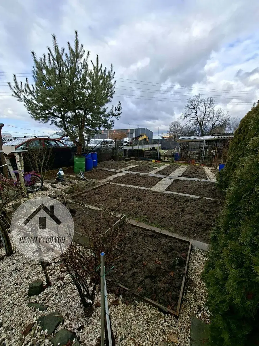 Pozemek má 9 upravených záhonků, mezi kterými jsou velmi účelně vydlážděné cestičky. Výhodou je i praktický skleník 4x2,5m.