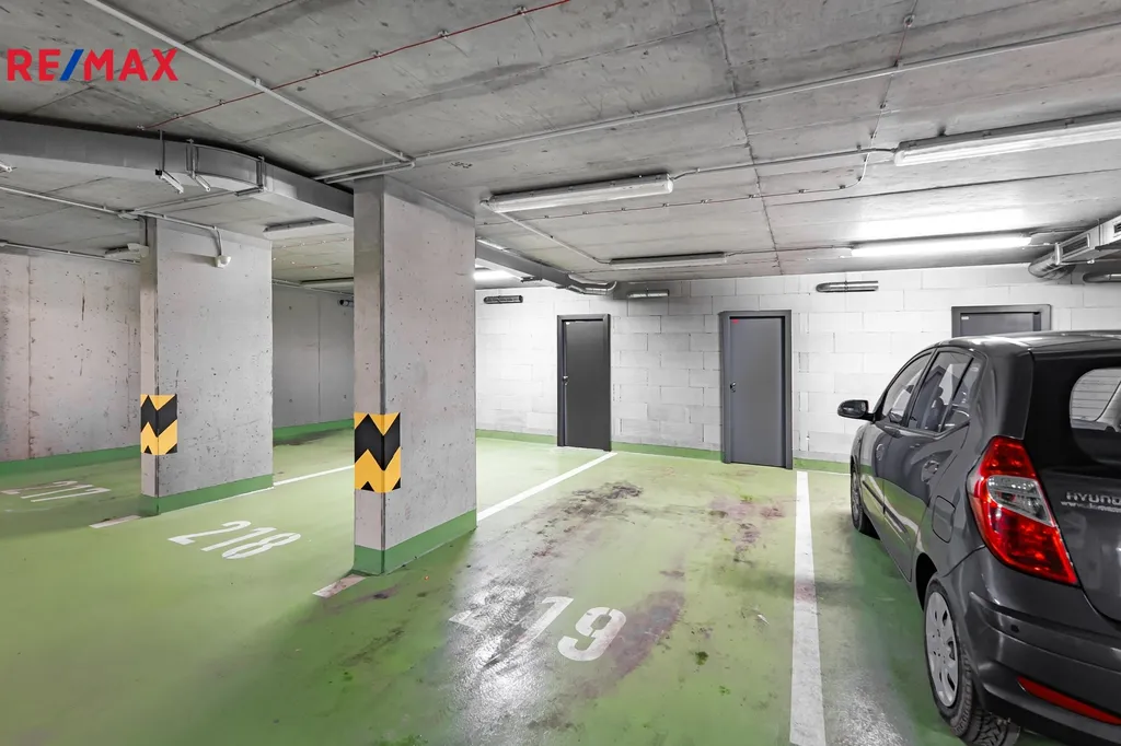 K bytu patří kryté garážové stání v domě, které lze dokoupit za 500 000 Kč, a hned vedle něj prostorná zamykatelná sklepní kóje cca 4,2 m². Nový majitel získá kompletní zázemí pro pohodlné bydlení — bez starostí s nábytkem či spotřebiči, vše je připraveno.