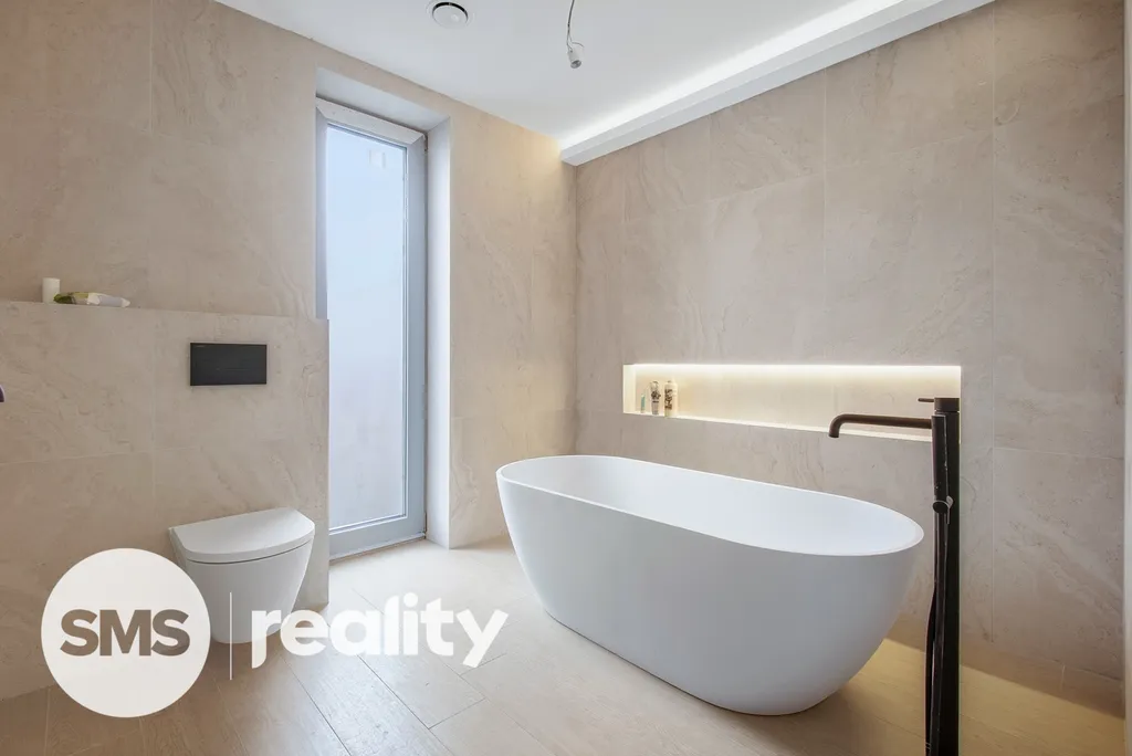 Dům nabízí čtyři prostorné ložnice (12,52 m², 12,59 m², 13,50 m² a pokoj o výměře 12,08 m² využitelný jako pracovna či pokoj pro hosty), dvě koupelny – jednu s vanou a toaletou (7,32 m²) a druhou se sprchovým koutem a toaletou (4,75 m²) – dále šatnu a technickou místnosti (6,48 m²) a místnost pro praní (1,83 m²). Součástí domu je také garáž o výměře 19,16 m² a před domem jsou k dispozici dvě komfortní parkovací stání.