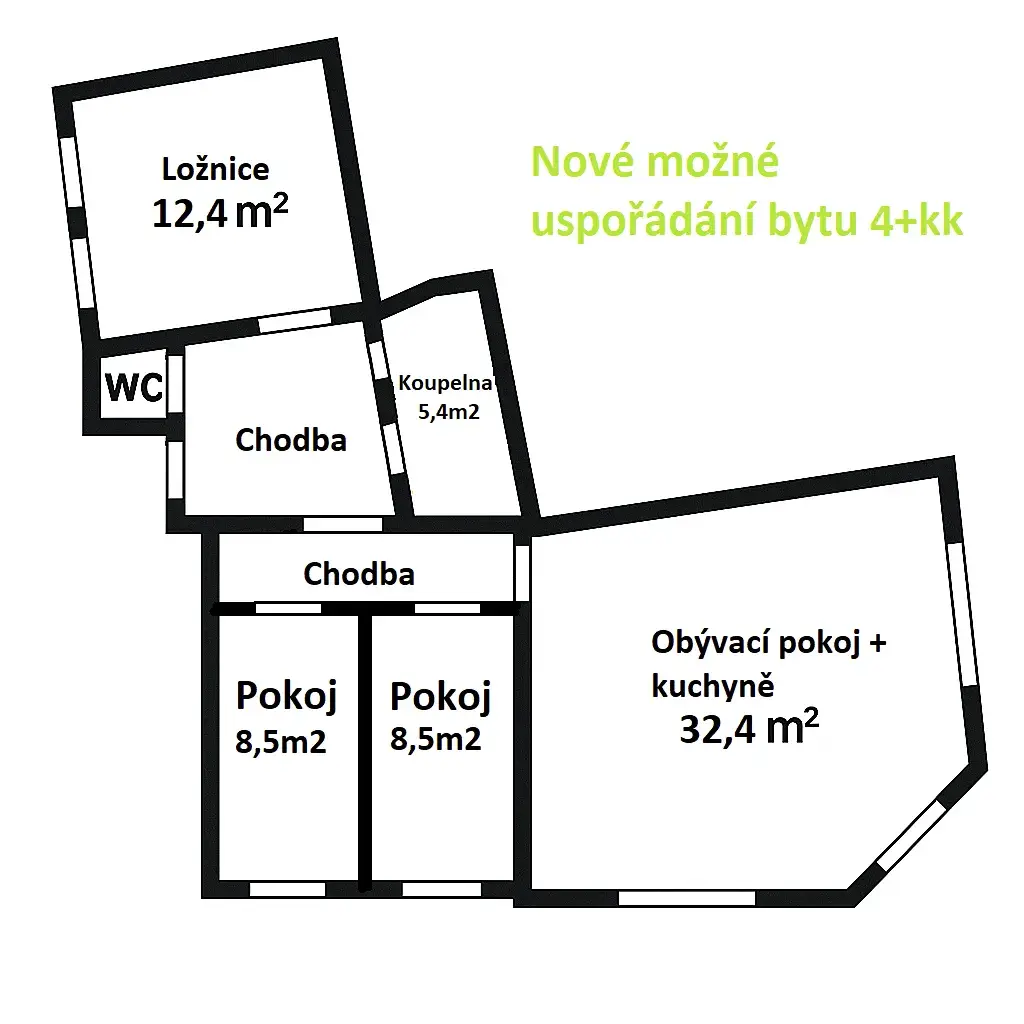 Nabízíme exkluzivně k prodeji pěkný prosvětlený byt 2+1 s možností rekonstrukce na 3+kk případně i 4+kk.