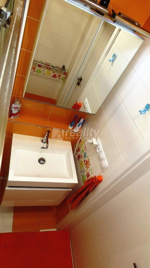 Foto je původní před stěhováním, nyní je z vybavení k dispozici prostorná kuchyňská linka včetně spotřebičů: sklokeramická indukční varná deska, vestavěná trouba, myčka na nádobí a mikrovlnná trouba, lednice s mrazákem, digestoř, jídelní deska + 4 židle. V předsíni botník, vestavěná skříň a potravinová skříň. V koupelně koupelnová skříňka s umyvadlem, koupelnová skříňka se zrcadlem a osvětlením, sprchový kout se skleněnou zástěnou.
