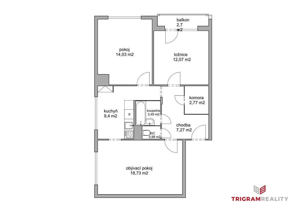 s balkonem o celkové ploše 71 m² (užitná plocha 68 m²).