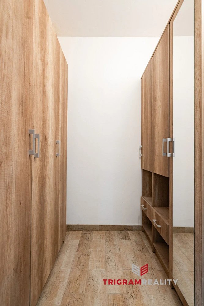 - Úložné prostory: Praktická komora přímo v bytě vybavená policovým systémem a šatní skříň v ložnici
