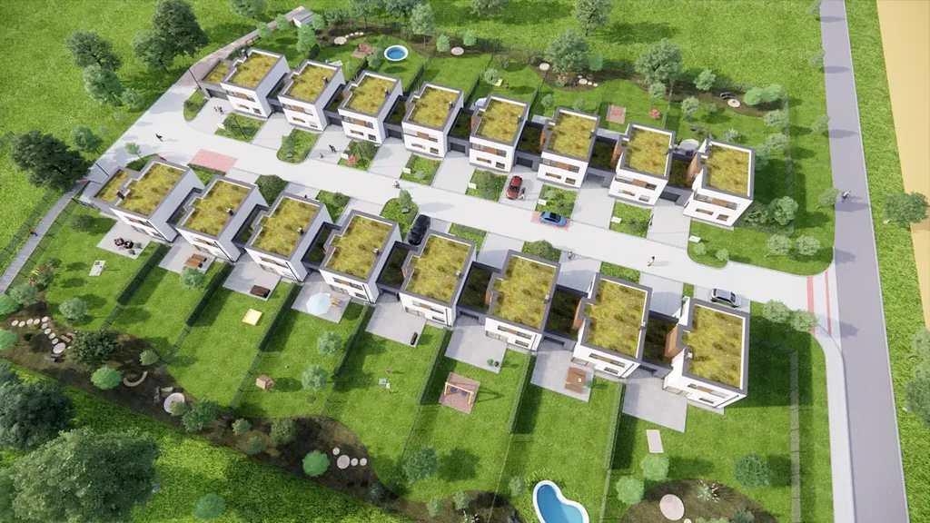 • Zahrada a relaxace: Pozemky o výměře od cca 414 m² do 716 m² poskytují dostatek soukromí i prostoru pro odpočinek na terase.