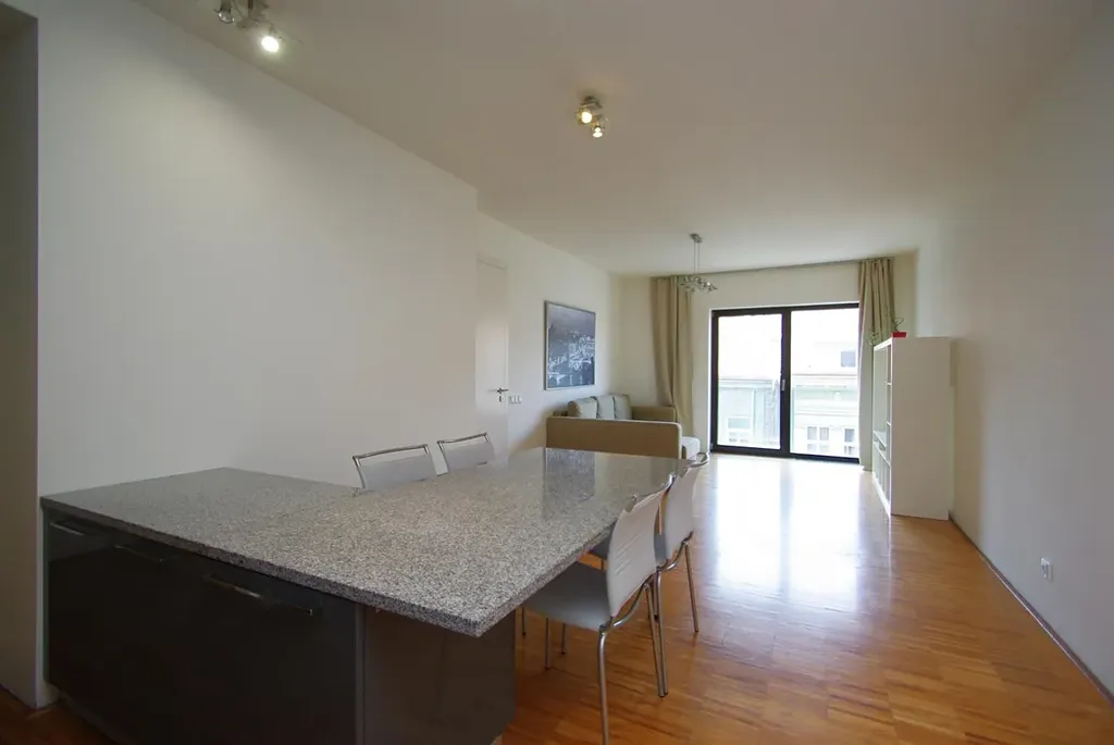 Tento světlý byt je zařízen nábytkem a sestává se ze vstupní chodby, prostorného obývacího pokoje s vybaveným kuchyňským koutem (lednice, sporák, myčka, mikrovlnní trouba) a s přístupem na balkón, dále ložnici, moderní koupelnou s vanou a toaletou. Na podlahách jsou parkety a v koupelně dlažba. K vybavení bytu dále patří bezpečnostní dveře, vysokorychlostní internet a vstupní domácí telefon. Vybavení bytu se může mírně lišit od fotografií.