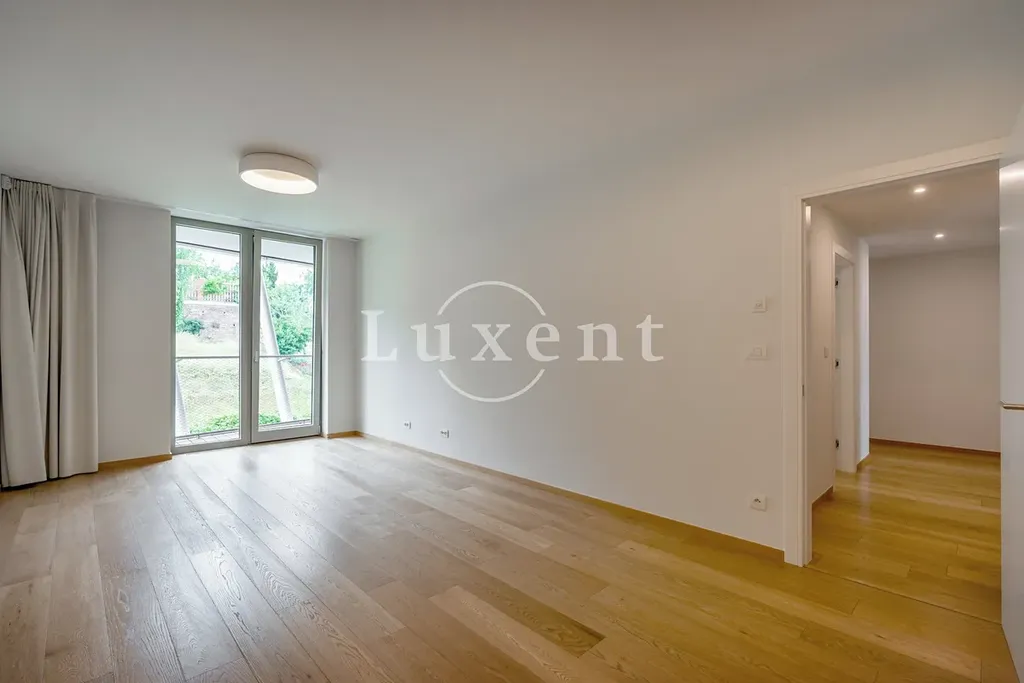 V projektu byly použity vysoce kvalitní materiály. Masivní dřevěné podlahy. V koupelnách velkoformátová dlažba. Podlahové topení v celém bytě. Francouzská okna se zvukovou izolací zajišťující klid a také nadměrné osvětlení. Každá z místností disponuje vlastním vstupem na terasu.