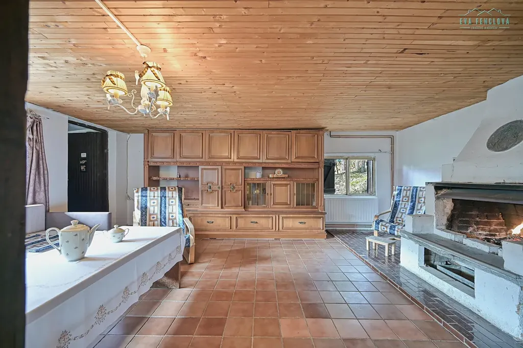 Chata je z menší části podsklepena, v přízemí je k dispozici obývací prostor s kuchyňským koutem.