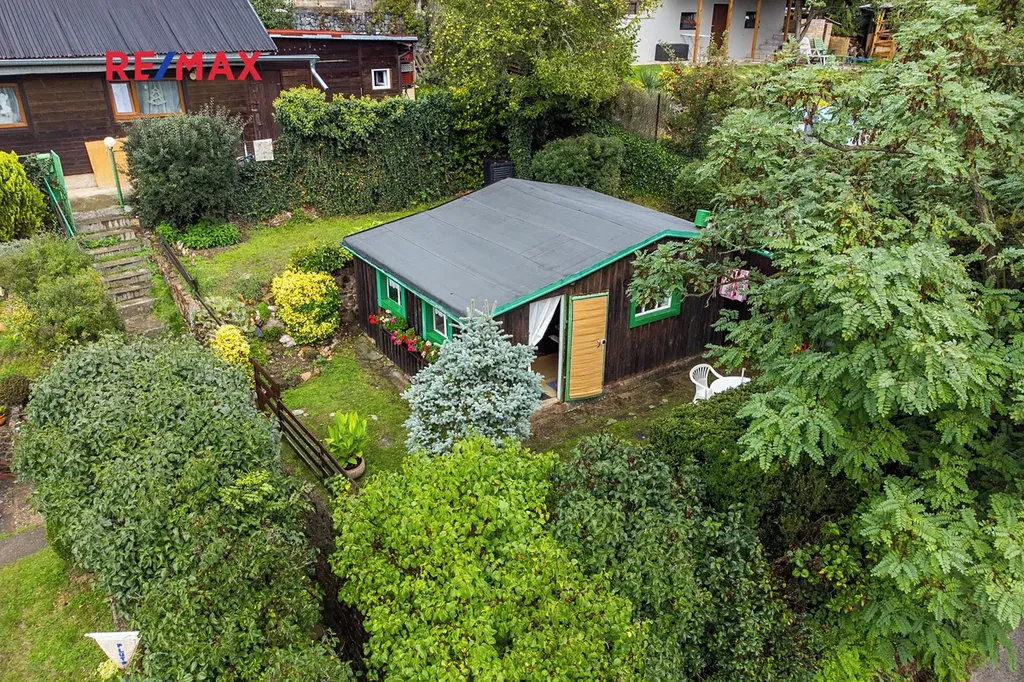 Chata se zahradou se prodává včetně veškerého vybavení a je na vlastním pozemku.