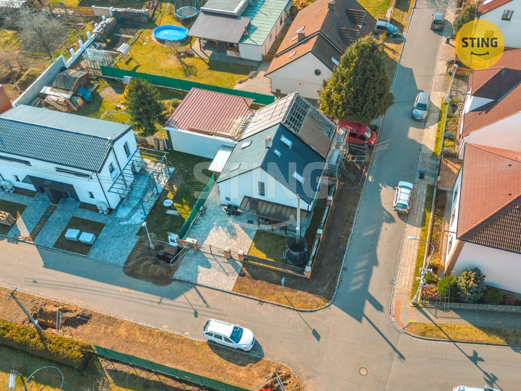 K domu náleží parkovací stání, zastřešená pergola a menší zahrada o celkové výměře 160 m2. Oplocený pozemek s automatickou vjezdovou bránou je možné využít například pro drobné zahradničení, či k umístění bazénu a hřiště pro děti.