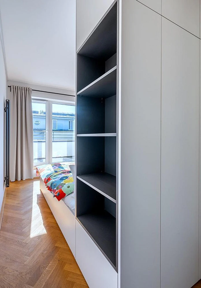Nabízíme Vám k pronájmu nadstandardně vybavený byt 3+kk 77 m² na základě návrhu architekta, v samém centru Brna na ulici Hybešova. Byt se nachází v 7. patře s výtahem. Dům je navržen tak, že jeho vzhled respektuje okolní zástavbu, ačkoliv je velice moderní. Tato lokalita je velice prestižní a v okolí se nachází nepřeberné množství podniků, jako jsou kavárny a restaurace, kulturní instituce a jiné. Vše co centrum Brna nabízí, je na dosah ruky. Vedle domu se nachází tramvajová zastávka. V docházkové vzdálenosti je i vlakové a autobusové nádraží.Dispozičně byt nabízí vstupní chodbu. Dále je zde obytná místnost s jídelnou a kuchyňským koutem. Obývací pokoj je vybaven sedací soupravou, konferenčním stolem, vestavěným nábytkem, jídelním stolem se 4 židlemi. Z obývacího pokoje je vstup na lodžii. Naproti se nachazí kuchyňský kout vybaven kuchyňskou linkou se dřezem, lednicí , myčkou, mikrovlnnou troubou, pečící troubou, varnou deskou a odsavačem par.Z obývacího pokoje je vstup do ložnice, která je vybavená vestavěným nábytkem, manželskou postelí i s rošty a matracemi. Z obývacího pokoje je vstup i do druhého pokoje, který leze využít třeba jako dětský pokoj. Zde je pouze vestavěná skříň. Z ložnice i druhého pokoje je vchod na balkón. Do koupelny je vstup z chodby. Zde je prostorný sprchový kout, zachodová mísa a umyvadlo s úložným prostorem. V chodbě je umístěn vestavěný nábytek. A je zde komora.Byt je vytápěn třemi topnými tělesy, koupelně je topný žebřík.Pokoje jsou vybaveny nábytkem, osvětlovacími tělesy a běžnými zařizovacími předměty jako je nádobí, lůžkoviny, závěsy atd., vše co vidíte na fotografiích je součástí bytu.K bytu dále náleží lodžie a terasa, sklepní kóje, parkovací stání v podzemni garáži s autovýtahem. Podlahová plocha terasy, lodžie, parkovacího místa a sklepní kóje se nezapočítává do celkové podlahové plochy jednotky.