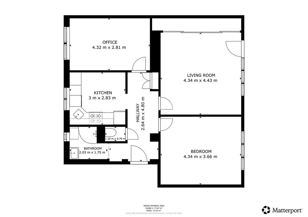 - Velkorysá dispozice 3+1: Byt má podlahovou plochu 77 m².