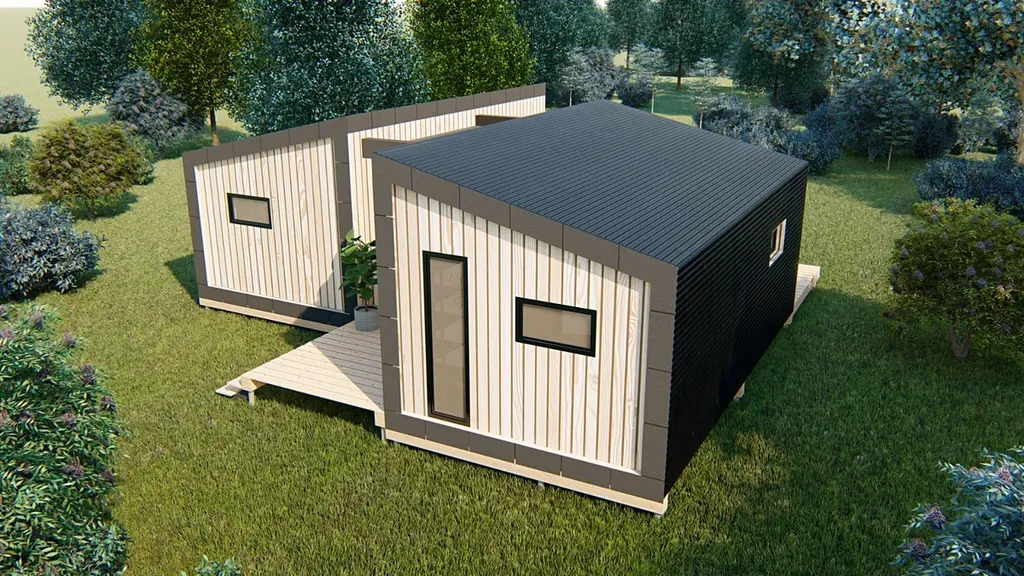 V přímém zastoupení českého výrobce nízkoenergetických dřevostaveb, nabízíme k prodeji stavebnici domu Duo Mini K 62, dispozice 3+kk, se zastavěnou plochou 62m2, v energetické třídě A.