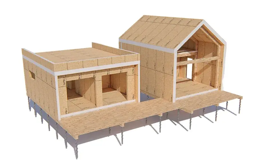 vnější stěny jsou tvořeny dvěma deskami OSB