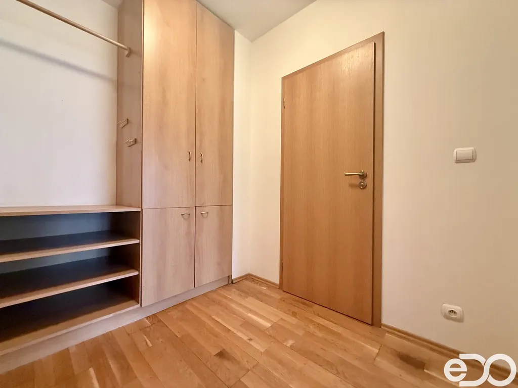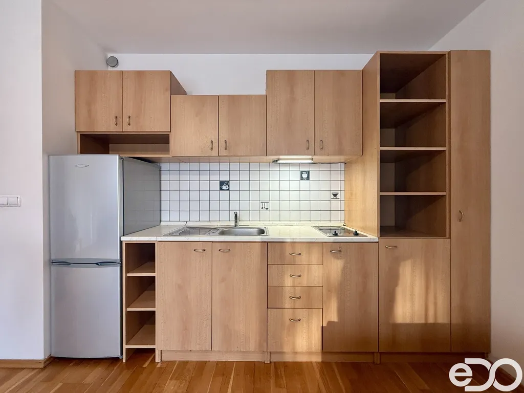 Byt má celkovou výměru 34 m² a nabízí prakticky řešený obytný prostor s kuchyňským koutem, kde lze pohodlně uspořádat obývací i spací část. Koupelna je vybavena vanou. Na jedné z fotografií je pro lepší představu doplněn nábytek formou vizualizace, která ukazuje možné uspořádání prostoru – toto vybavení však není součástí pronájmu. Byt je nyní připraven k okamžitému nastěhování.