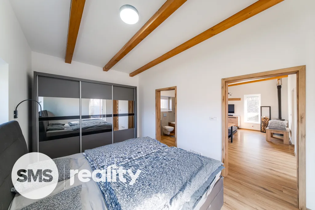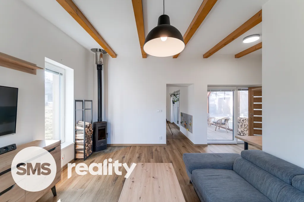 Dům o užitné ploše 99 m² má praktickou dispozici 3+1, která odděluje zónu pro vaření od relaxační části. V obývacím pokoji jsou dominantou krbová kamna, která jsou ideální pro vytvoření útulné atmosféry během dlouhých zimních večerů a zároveň slouží jako efektivní zdroj tepla. Soukromé zázemí tvoří ložnice s přímým vstupem do vlastní koupelny a další samostatný pokoj, přičemž v domě naleznete ještě druhou, samostatnou koupelnu pro maximální komfort všech členů domácnosti.