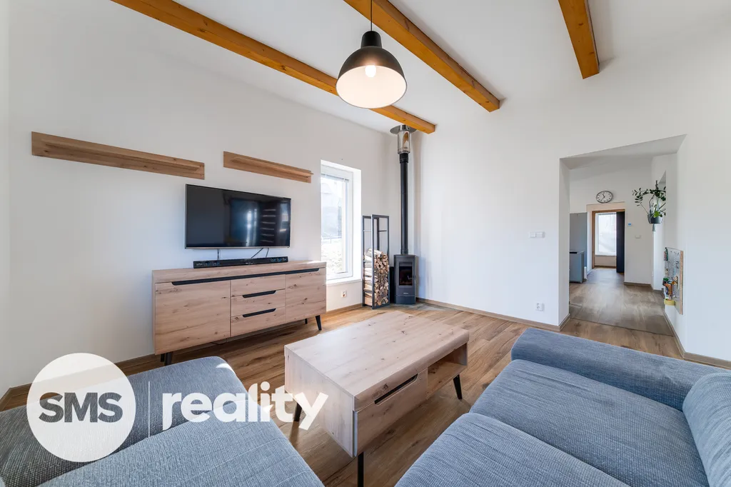 Dům o užitné ploše 99 m² má praktickou dispozici 3+1, která odděluje zónu pro vaření od relaxační části. V obývacím pokoji jsou dominantou krbová kamna, která jsou ideální pro vytvoření útulné atmosféry během dlouhých zimních večerů a zároveň slouží jako efektivní zdroj tepla v kombinaci s podlahovým topením. Soukromé zázemí tvoří ložnice s přímým vstupem do vlastní koupelny s vlastní toaletou a vanou a další samostatný pokoj, přičemž v domě naleznete ještě druhou, samostatnou koupelnu pro maximální komfort všech členů domácnosti.