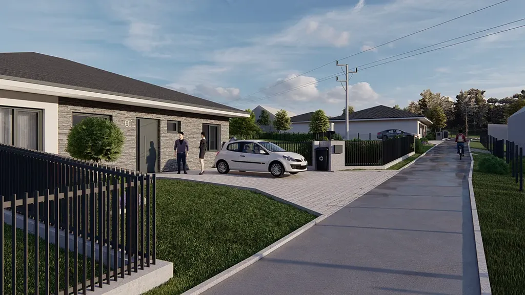 Cena kompletně dokončeného domu (bez kuchyňské linky), včetně zámkové dlažby, úpravy pozemku a oplocení, venkovních žaluzií.
