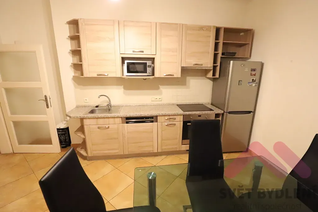 Byt se nachází v přízemí prvorepublikové vily (ve vile jsou pouze 3 byty), která prošla kompletní rekonstrukcí, okna jsou orientována do zahrady. Byt je kompletně vybavený moderním nábytkem a vestavěnými skříněmi (oproti fotografiím je v bytě navíc rohová sedací souprava) + kuchyňská linka s vestavěnými spotřebiči (myčka, lednička s mrazákem, varná deska apod..). V předsíni je umístěna pračka. Dům se nachází v klidné vilové lokalitě s výbornou dostupností do centra (cca. 5min chůze se nachází metro Kačerov). Vytápění a ohřev vody zajišťuje samostatný plynový kotel. Byt je zabezpečen alarmem s možností napojení na PCO. Parkování, které je již zahrnuto v ceně nájmu je možné na zahradě vjezd na po pozemek je řešen vraty na dálkové ovládání. Velkou zahradu je možné využívat k posezení, grilování apod.. Volné ihned!