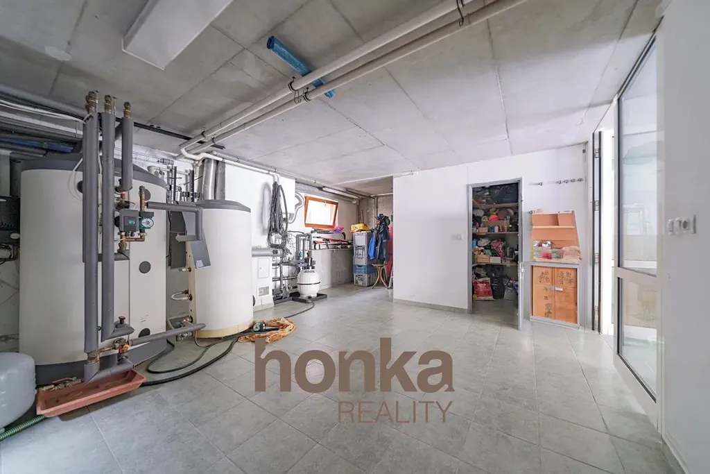 Suterén: garáž (43,8 m²), šatna, WC, technická místnost