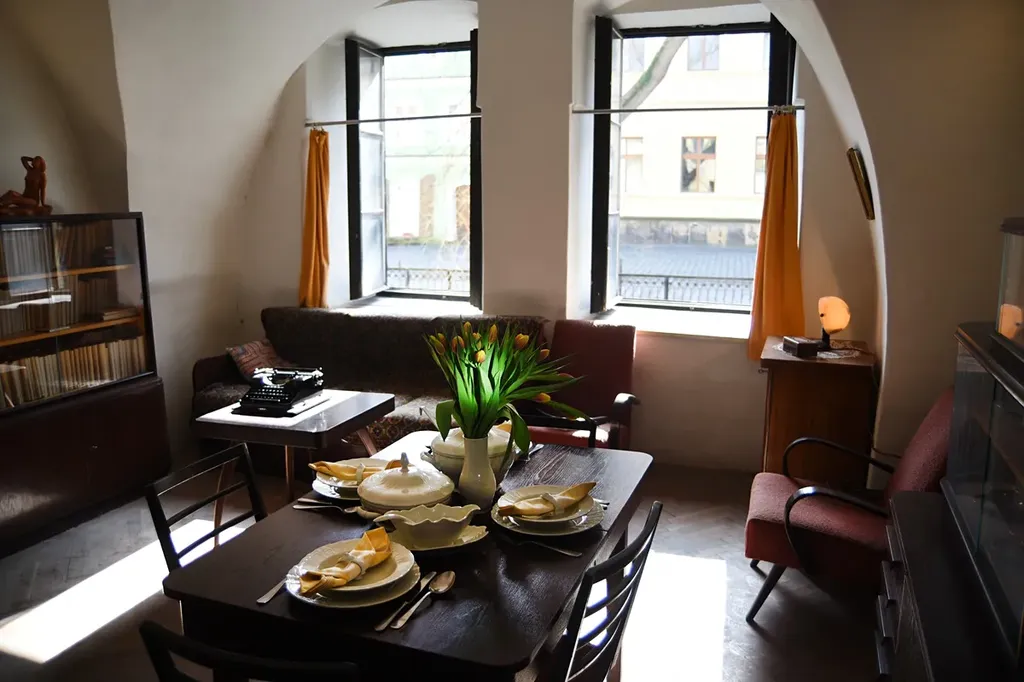 Za obchodem, v zadní části prvního nadzemního podlaží, s okny do Wernerova nábřeží a ulice Pod Sklípky, se dochoval byt majitele. Ve druhém patře je pak další, rozlehlejší byt, který obývala sestra majitele s rodinou. Tento byt má okna jak do Wernerova nábřeží, tak i do Kostelní ulice. Pro množství výklenků, chodeb a nepravoúhlost místností uvádíme přibližnou podlahovou plochu domu (přízemí a druhé patro) jako cca 300 m², samotný byt v druhém nadzemním podlaží má přibližně 150 m². Celý dům je podrobně zaměřen Společností pro rekonstrukci památek a výkresy jsou k nahlédnutí.