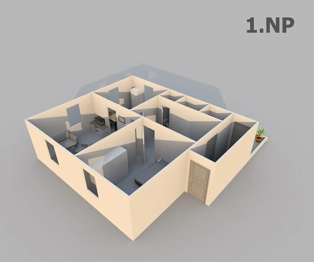 - prostorný dětský pokoj (původně dvě místnosti) – možnost opětovného rozdělení
