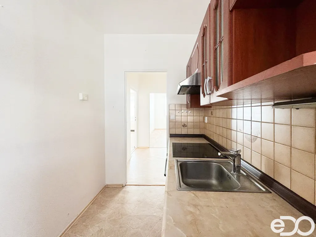 Byt je částečně zařízený – k dispozici je kuchyňská linka se sporákem a myčkou. Výhodou je praktická dispozice. Dva velké neprůchozí pokoje, lodžie, komora a samostatná kuchyně. Sklepní kóje součástí. Dispozice nabízí pohodlné bydlení pro jednotlivce, pár nebo menší rodinu.