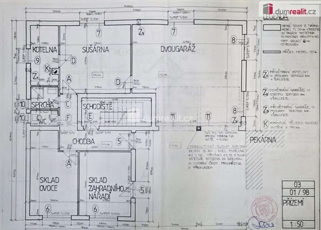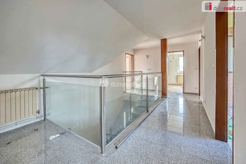 Dumrealit.cz Vám zprostředkuje prodej nemovitosti nedaleko centra Neratovic. Jedná s o stavbu nepodsklepeného, podkrovního, rodinného domu s přízemím určeným k podnikání. Dům je navržen a postaven z z cihelných tvárnic Hebel s použitím kontaktního zateplovacího systému Montako 80 mm, na vnějším límci. Konstrukce stropů je z železobetonových dutinových panelů a sedlového krovu s vykýři. Jako krytina jsou použita kanadské šindele. V přízemí objektu se nachází dvojgaráž, sušárna, kotelna a sociální zázemí objektu. Do podkroví je přístup zajištěn monolitickým dvouramenným schodištěm. V podkroví jsou obytné místnosti : obývací pokoj, obytná kuchyně s jídelnou, dvě ložnice, pracovna, koupelna s WC a chodba. Objekt je na severovýchodní straně umístěn na hranici se sousedním pozemkem.